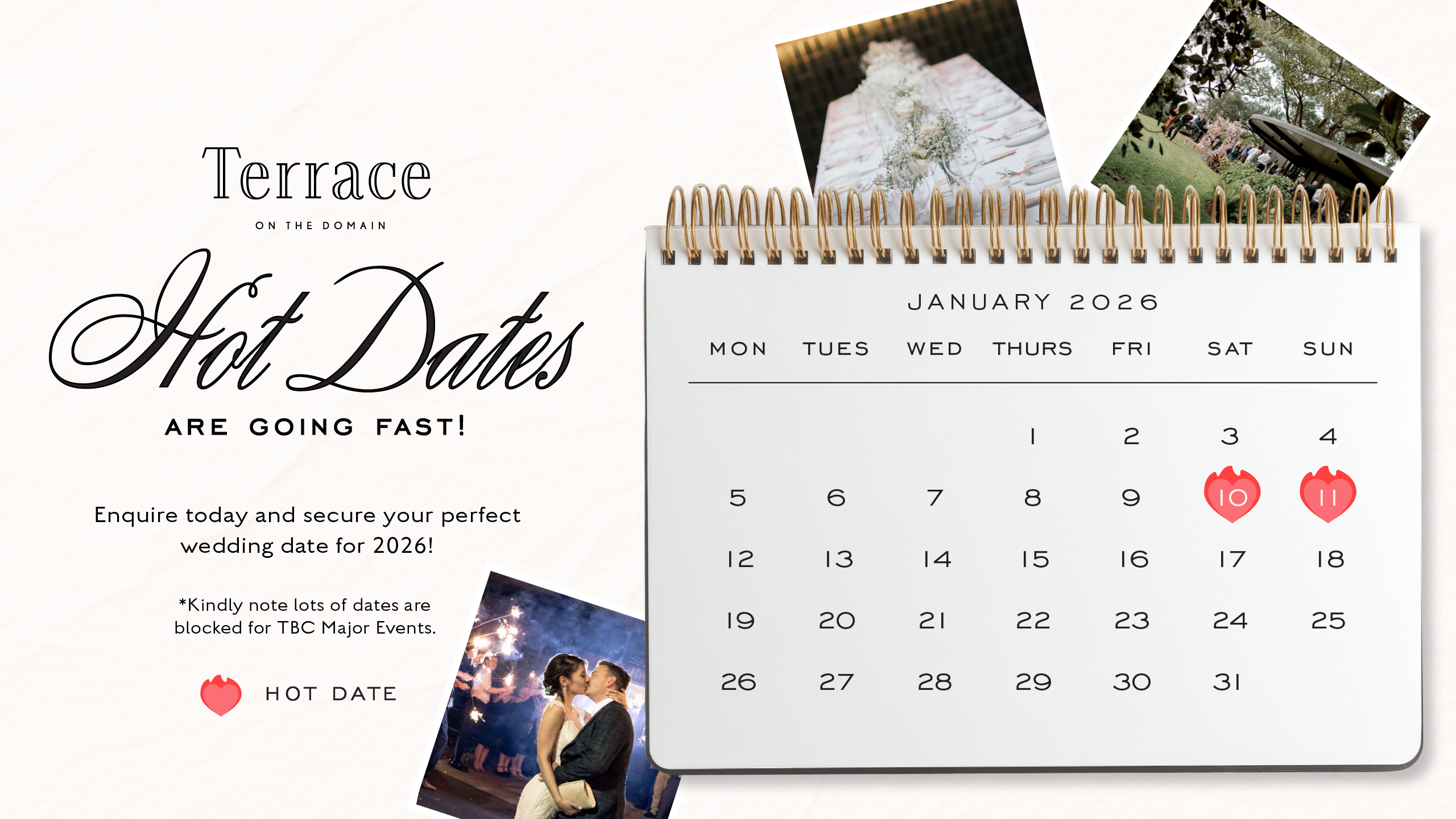 A few exclusive early 2026 dates have just opened up for weddings in this stunning city-side location, overlooking lush gardens and iconic views.